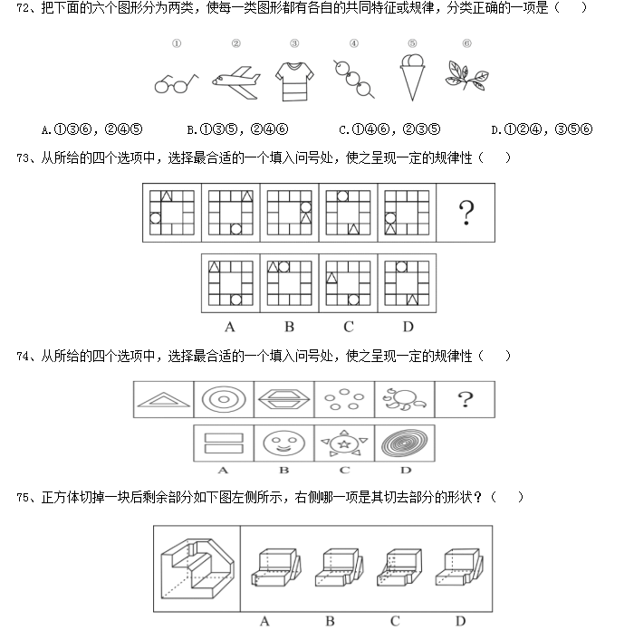 共15題,所給出的材料均有多個問題,根據(jù)資料所提供的信息進行分析、比較、計算和判斷處理。