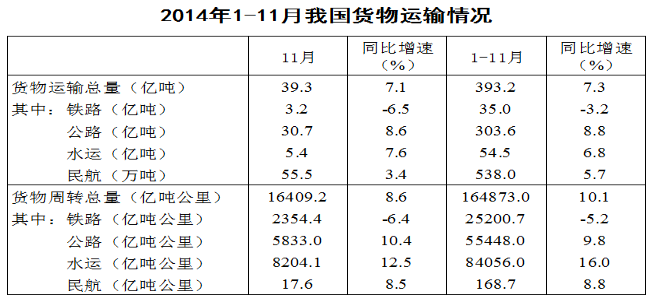120.關(guān)于2014年1~11月我國(guó)貨物運(yùn)輸狀況,能夠從上述資料中推出的是:( )