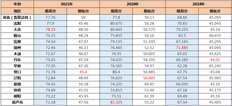 2019-2021遼寧省考進(jìn)面分?jǐn)?shù)線