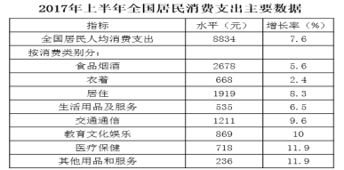 118.關(guān)于2017年上半年全國居民收入和消費(fèi)支出主要數(shù)據(jù)情況,下列說法正確的是( )
