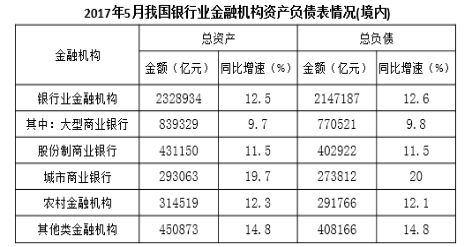 107.在2017年5月我國銀行業(yè)金融機(jī)構(gòu)資產(chǎn)負(fù)債表中,下列哪一項的總資產(chǎn)同比增長額最高?( )