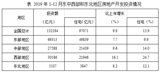問:2019年全國房地產(chǎn)開發(fā)投資增長最快的地區(qū)是:( )