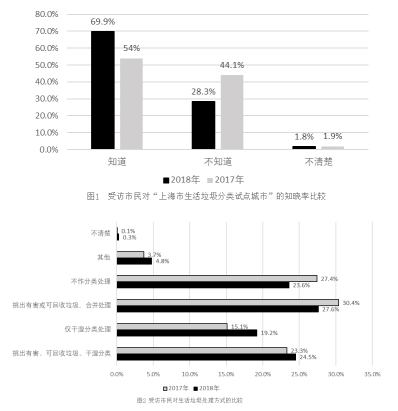 【問題1】在2018年受訪市民中,“知道”上海是生活垃圾分類試點城市的,一定有人對生活垃圾處理方式為挑出有害、可回收垃圾、干濕分類。