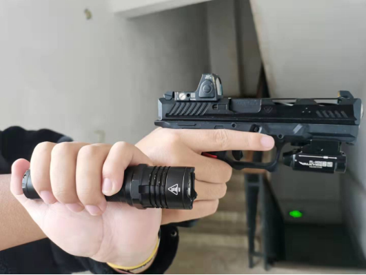 低光環(huán)境下最重要的裝備就是照明設(shè)備。這里所指照明設(shè)備包括戰(zhàn)術(shù)手電和槍燈兩種。在講手電和槍燈之前,我們需要在思維中建立一個原則,這個原則就是“1等于0,2等于1”。這個原則就是指我們認為使用照明裝備時,攜帶一個照明裝備等于沒有攜帶照明裝備,攜帶兩個照明裝備才認為是裝備了一個照明裝備。這是一個以底線思維為基礎(chǔ)的戰(zhàn)術(shù)思維和原則,這里筆者建議各位同志在處理警情的時候攜帶兩支以上照明設(shè)備,這里的考慮是在主要使用的照明設(shè)備出現(xiàn)問題或者電量不足時可以有備用的設(shè)備進行使用,如果只帶一個照明設(shè)備,一旦出現(xiàn)問題無法使用,那和沒有攜帶照明裝備有什么區(qū)別?所以,參與低光環(huán)境下執(zhí)法活動、巡邏防控的警務(wù)人員,身上都應(yīng)該帶有起碼兩個以上的照明設(shè)備,這里指戰(zhàn)術(shù)手電、槍燈、醫(yī)療手電、頭燈等,這樣能在主要照明設(shè)備故障時保證有繼續(xù)照明的能力。
