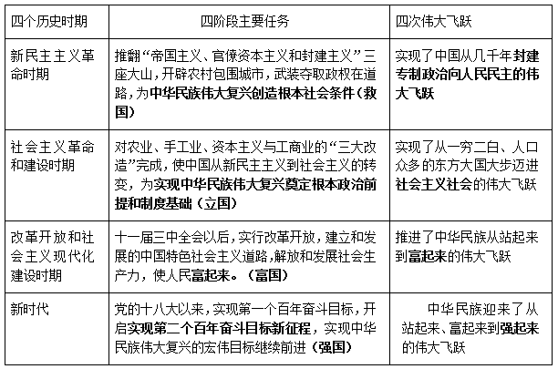 記憶要點:四階段主要任務——救國、立國、富國、強國;