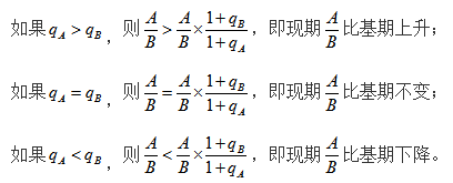兩數(shù)之比,簡單來講就是兩個統(tǒng)計指標(biāo)作除法。所求的統(tǒng)計指標(biāo)在材料中沒有直接給出,但是可以用材料中提到的兩個指標(biāo)相除來表示。一般材料中提到的統(tǒng)計指標(biāo)分別用A和B表示,對應(yīng)的增長率分別用