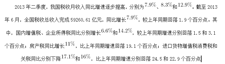 ①2013年第一季度我國(guó)稅收總收入同比增速低于