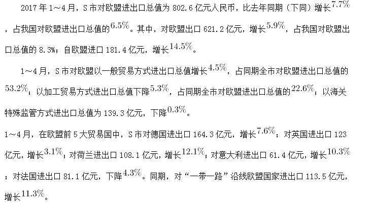 110.關(guān)于2017年1~4月S市對(duì)歐盟貿(mào)易情況,能夠從上述資料中推出的是:( )