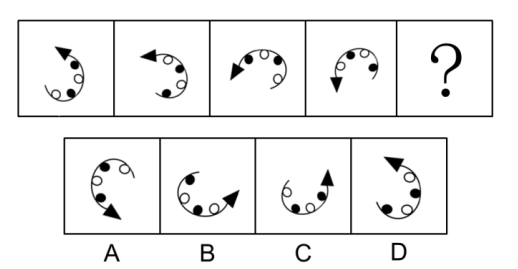 69. 請(qǐng)選擇最適合的一項(xiàng)填入問(wèn)號(hào)處,使之符合之前四個(gè)圖形的變化規(guī)律:( )
