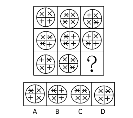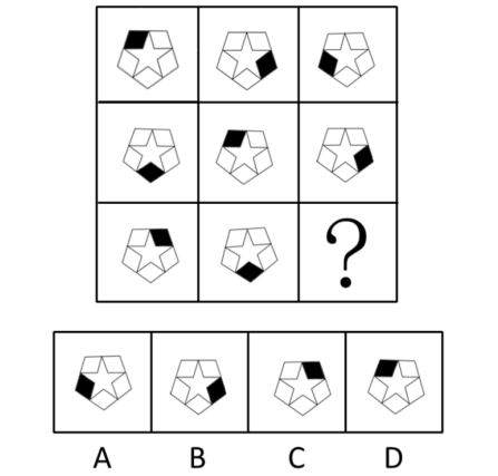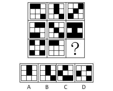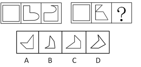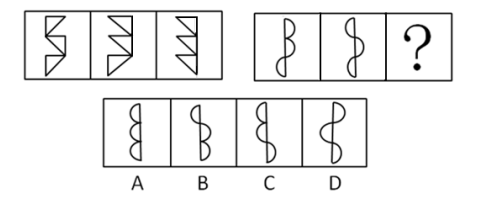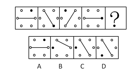 68. 請(qǐng)選擇最適合的一項(xiàng)填入問(wèn)號(hào)處,使之符合之前四個(gè)圖形的變化規(guī)律:( )