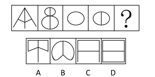 61.請(qǐng)選擇最適合的一項(xiàng)填入問(wèn)號(hào)處,使之符合之前四個(gè)圖形的變化規(guī)律:( )