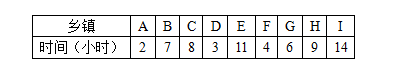 80.某機(jī)構(gòu)要派工作人員到9個(gè)鄉(xiāng)鎮(zhèn)進(jìn)行業(yè)務(wù)檢查。工作人員每到一個(gè)鄉(xiāng)鎮(zhèn)進(jìn)行業(yè)務(wù)檢查后必須返回單位匯報(bào),這一行程的總時(shí)間見(jiàn)下表。如果這項(xiàng)工作要在16個(gè)小時(shí)內(nèi)完成,則該單位至少要派出多少名業(yè)務(wù)員:( )