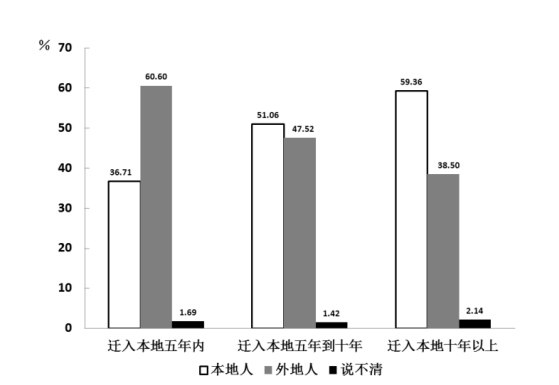 外來(lái)人口對(duì)自己是否屬于本地人的認(rèn)同情況