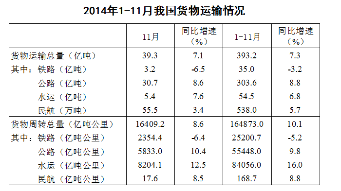108.關(guān)于2014年1~11月我國貨物運輸狀況,能夠從上述資料中推出的是:( )
