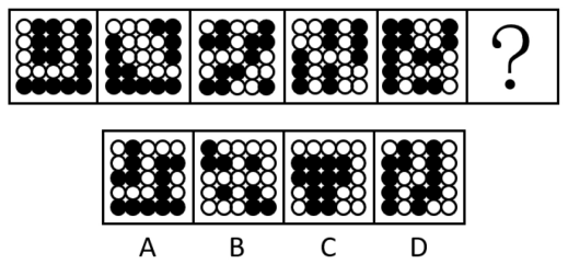 例題:從所給的四個選項(xiàng)中,選擇最合適的一個填入問號處,使之呈現(xiàn)一定的規(guī)律性:( )