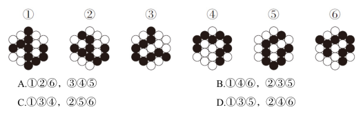 【答案】A【解析】首先分析題干特征,黑球都是以線條的形式連接在一起,我們可以考慮從筆畫的角度入手。圖形③④⑤都是一筆畫圖形,圖形①②⑥都是兩筆畫圖形,所以A選項(xiàng)正確。