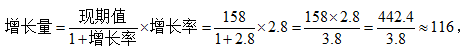 【答案】C【解析】已知現(xiàn)期值為158個,增長率為2.8,求解增長量,則列式為