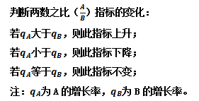 如果部分增長率>整體增長率,則部分增長率-整體增長率>0,則作差結(jié)果就大于0,則現(xiàn)期比重>基期比重;如果部分增長率=整體增長率,則部分增長率-整體增長率=0,則作差結(jié)果就等于0,則現(xiàn)期比重=基期比重;如果部分增長率<整體增長率,則部分增長率-整體增長率<0,則作差結(jié)果就小于0,則現(xiàn)期比重<基期比重。