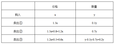 最終所獲得的利潤率=(總售價(jià)-總成本)÷總成本=(1.5x×0.1y+1.2x×0.7y+0.6x×0.2y-xy)÷xy=0.11。答案選A。