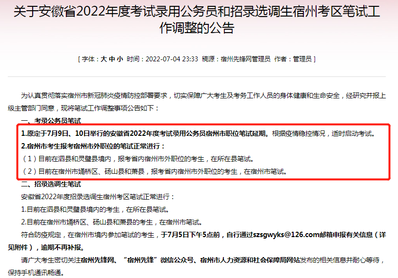 注!意!2022年安徽省考宿州職位筆試延期了,重啟時(shí)間待定!詳情如下: