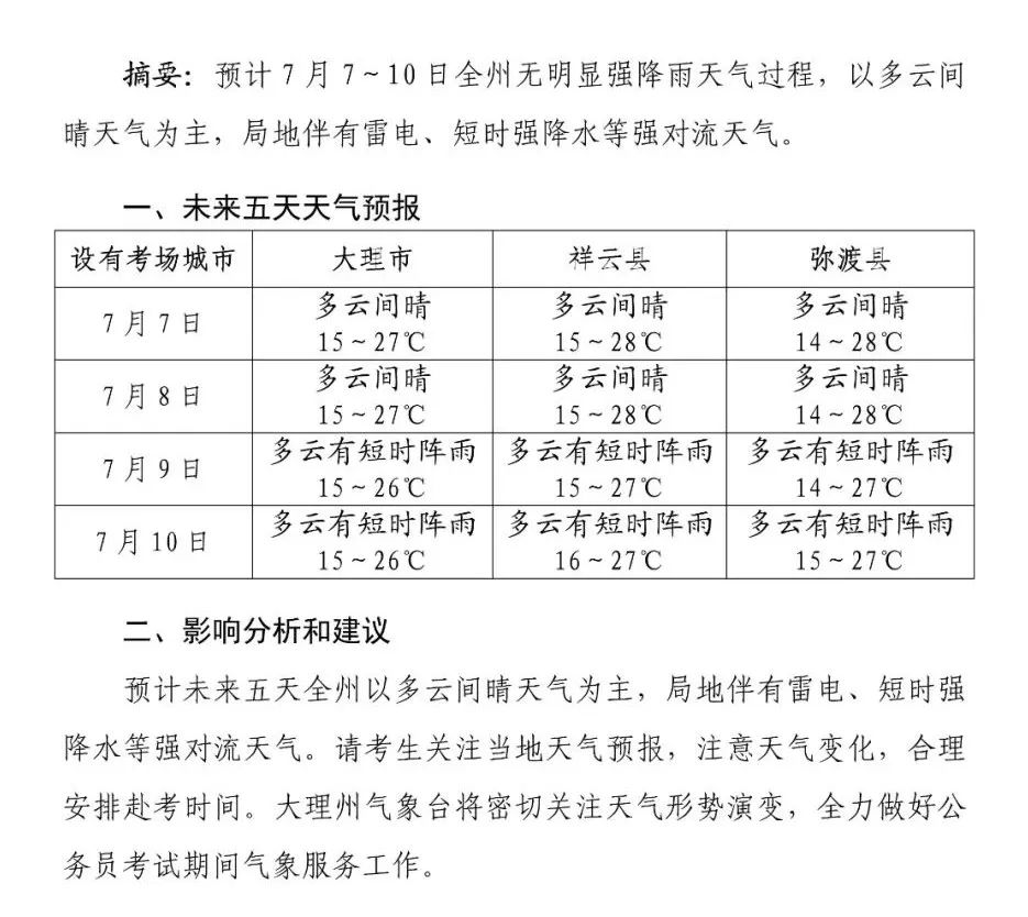 大理州2022年公務(wù)員考試天氣預(yù)報