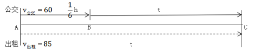 =10千米。此時(shí)某人乘出租車從A、公交車從B同時(shí)出發(fā),到C點(diǎn)出租車追上公交車(運(yùn)動(dòng)時(shí)間相等),設(shè)出租車追公交車的時(shí)間為t,由直線追及公式