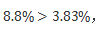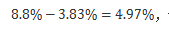 =4.8%-0.12%=4.68%,B項(xiàng)最為接近,故本題選擇B選項(xiàng)。