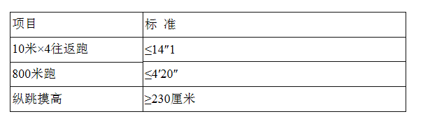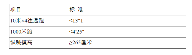 考生因受傷、心腦血管疾病、呼吸道疾病、懷孕等原因不宜參加體能測(cè)評(píng)的,應(yīng)主動(dòng)放棄,否則后果自負(fù)。體能測(cè)評(píng)結(jié)果以現(xiàn)場(chǎng)為準(zhǔn),不進(jìn)行復(fù)測(cè)。體測(cè)各項(xiàng)結(jié)果均合格的考生參加面試,有一項(xiàng)不合格的,取消面試資格。