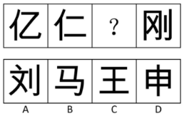 在圖形中出現(xiàn)漢字,我們可以通過(guò)觀察漢字本身的特征來(lái)思考規(guī)律。優(yōu)先考慮常規(guī)的筆畫數(shù)、部分?jǐn)?shù)、封閉區(qū)域數(shù);若漢字元素組成大體相似,可考慮全部求同??忌鷤?cè)谄綍r(shí)做題過(guò)程中可注意識(shí)別,希望同學(xué)們能通過(guò)刷題,觸類旁通,總結(jié)圖形的相應(yīng)考點(diǎn),提高做題正確率。