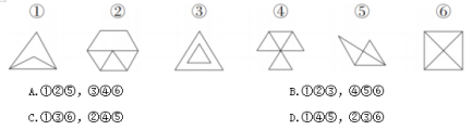 例3:把下面的六個(gè)圖形分為兩類,使每一類圖形都有各自的共同特征或規(guī)律,分類正確的一項(xiàng)是:( )