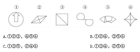 例題:把下面的六個(gè)圖形分成兩類,使每一類圖形都有各自的共同特征或規(guī)律,分類正確的一項(xiàng)是:( )