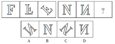 例2:從所給的四個(gè)選項(xiàng)中,選擇最合適的一個(gè)填入問(wèn)號(hào)處,使之呈現(xiàn)一定的規(guī)律性:( )